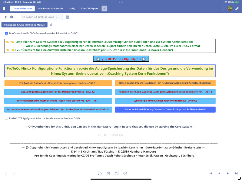 Professional and detailed 'Smart-Device-basiertes' Tennis-Coaching-System "SPTC-SmartProTennisCoach" native-Data-Base