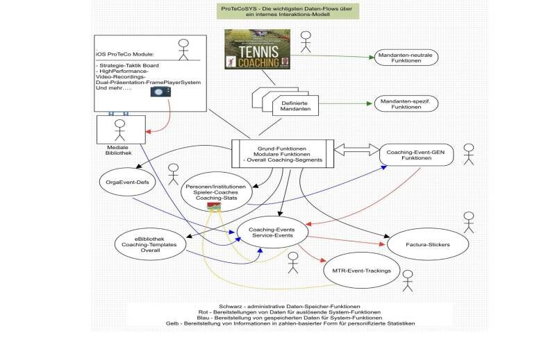 Tutti i risultati, i dettagli, i risultati, le informazioni, ecc. del lavoro di Coaching-, comprese le prospettive dei media, passano al sistema centrale per l'archiviazione storicizzante, per essere sempre aggiornato come gli sviluppi storici delle prestazioni - resp. essere in grado di rendere presenti i profili di performance - dei giocatori di tennis - allenati - in modalità coaching - come nella modalità competitiva reale -.