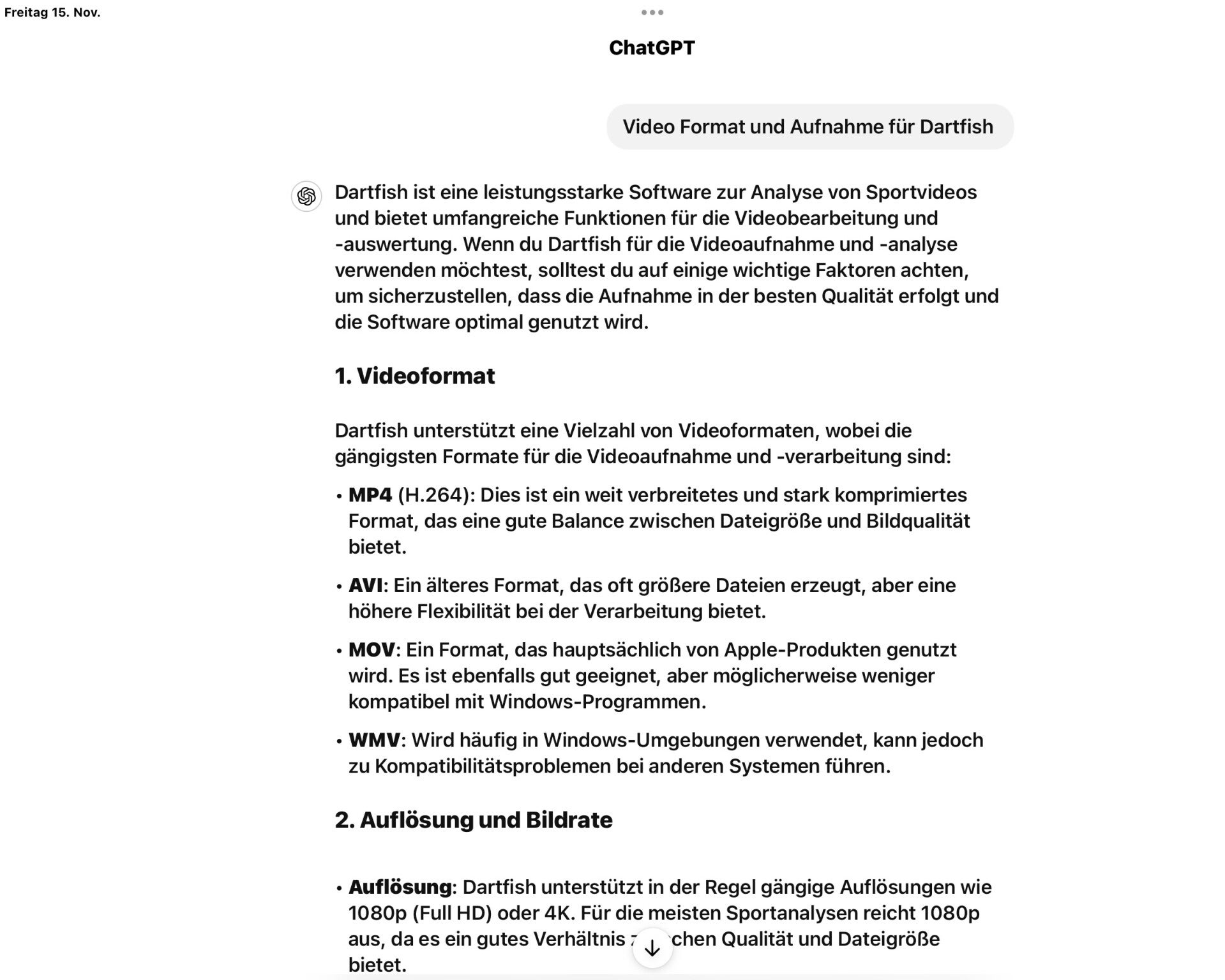 Empfohlen wird die Verwendung der mobilen APP der weltweiten Services von DARTFISH / SwingVision / PlaySight / 40Love.AI