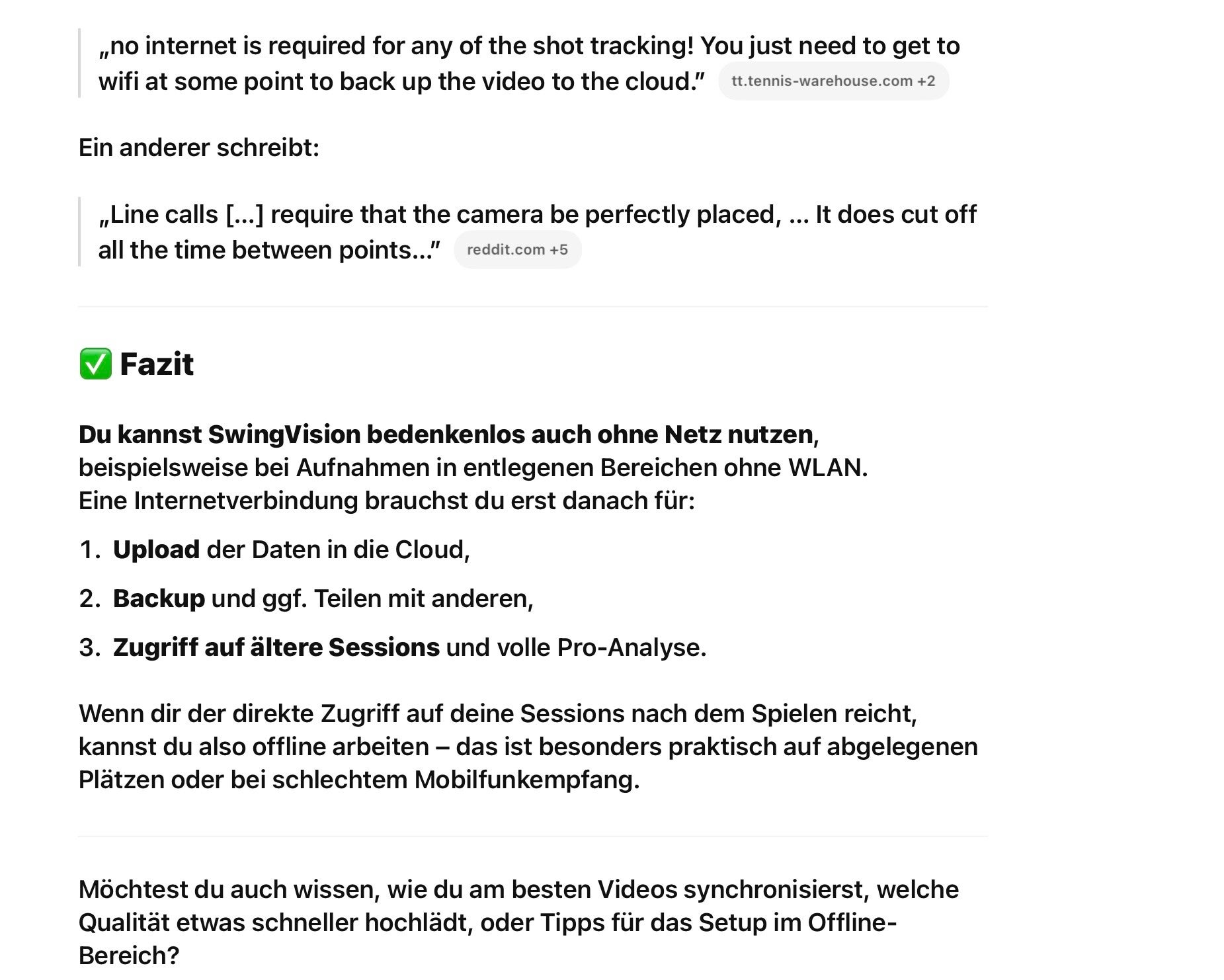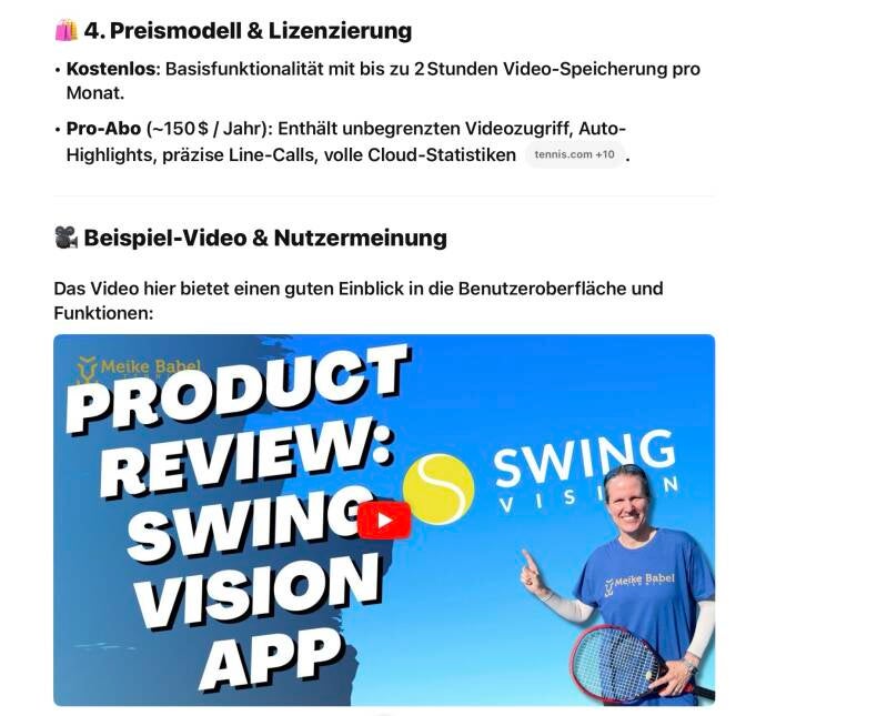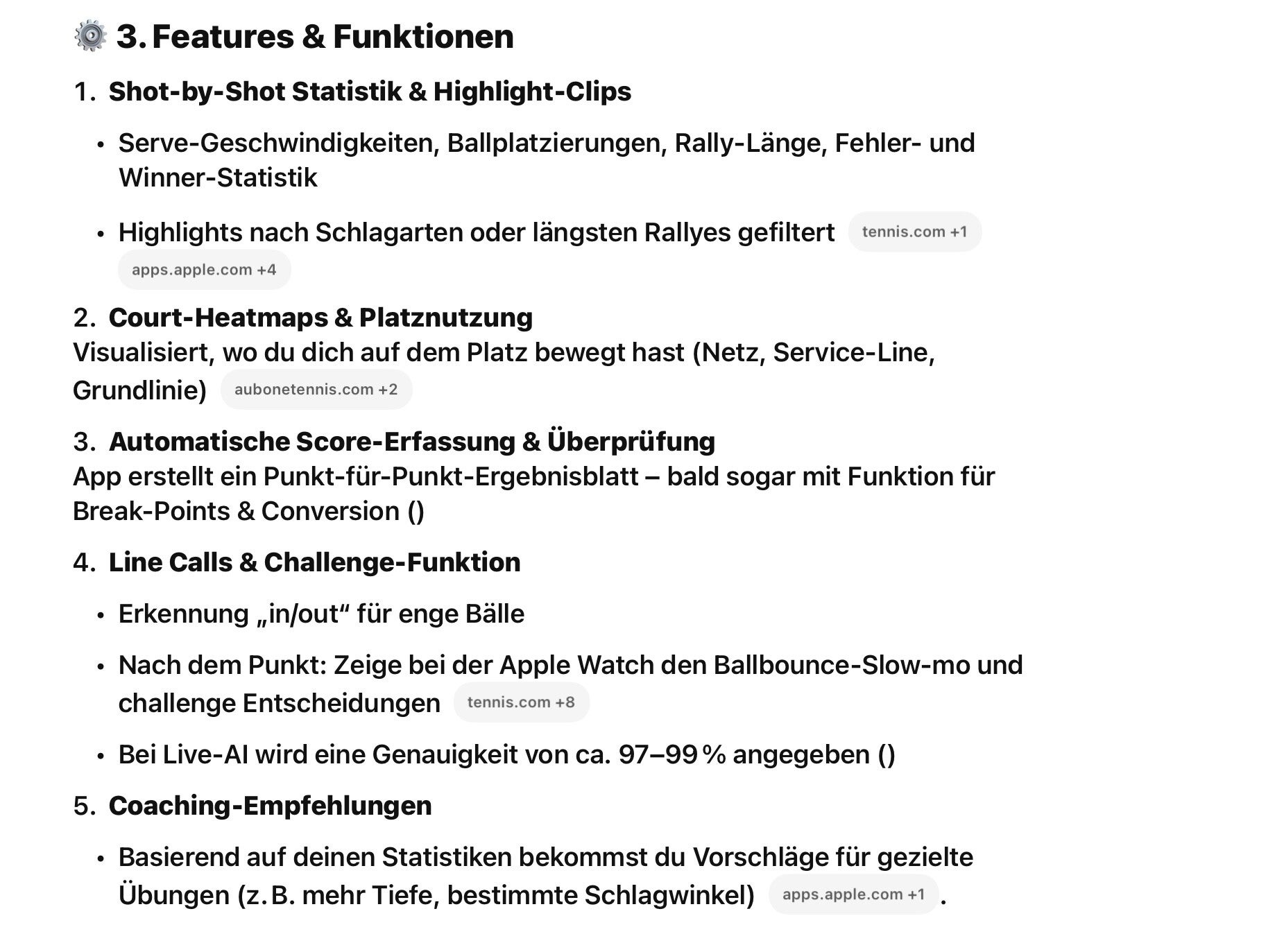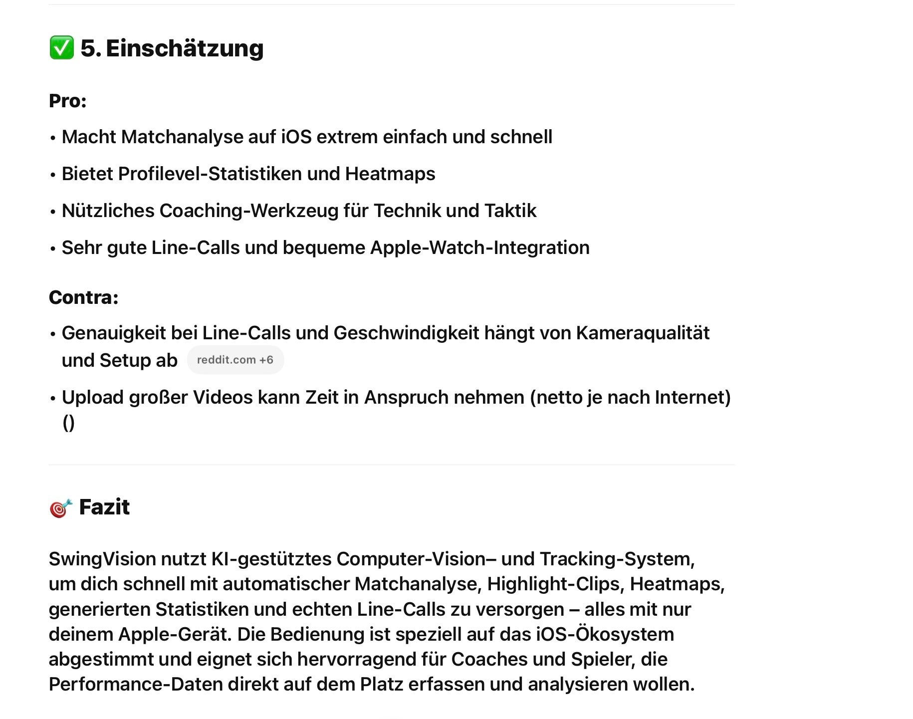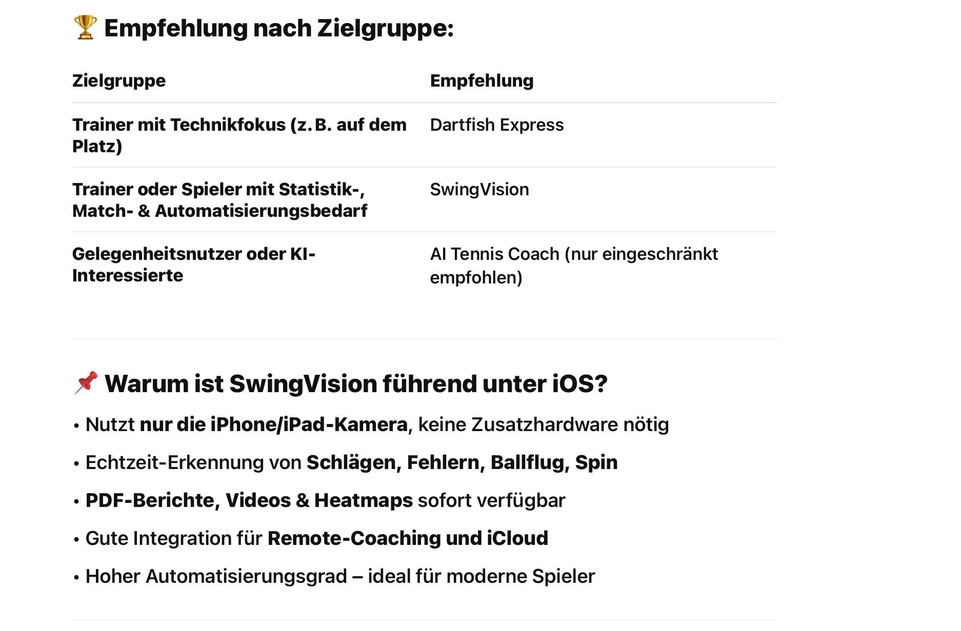 - SwingVision ist eine AI-basierte Video-Analyse-App für Tennis, die mit dem iPhone funktioniert – inklusive automatischer Statistiken, Line‑Calling und Schlaganalyse .