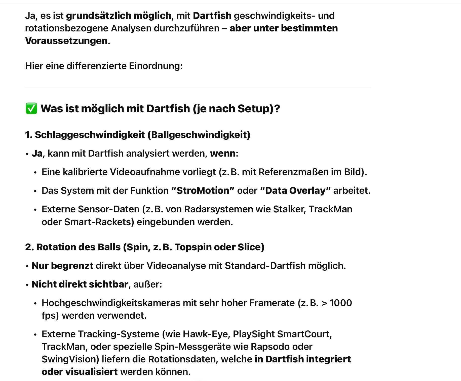 - Dartfish ist ein professionelles System für Videoanalyse und Bewegungsauswertung, das besonders von Vereinen, Akademien oder Colleges im Tennissport genutzt wird ().